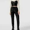 Die Hose von Cambio ist aus strapazierfähigem Material gefertigt und eng anliegend geschnitten. Sie zeigt sich in Leder-Optik mit elastischem Bund und Teilungsnähten.