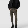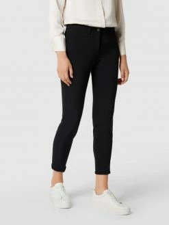 Die Stoffhose von Cambio ist aus glattem Material gefertigt und schmal geschnitten. Sie zeigt sich im klassischen Design mit Eingrifftaschen und fixiertem Aufschlag an den Beinabschlüssen.