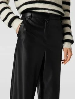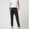 Die Hose von REVIEW ist aus strapazierfähigem Material gefertigt und locker geschnitten. Sie kommt in Leder-Optik, mit Eingriff- und Gesäßtaschen sowie Haken- und Reißverschluss.