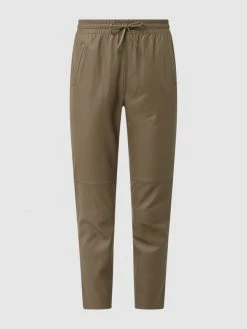 Die Hose von REVIEW ist aus strapazierfähigem Material gefertigt und locker geschnitten. Sie kommt in Leder-Optik, mit Eingriff- und Gesäßtaschen sowie Haken- und Reißverschluss.